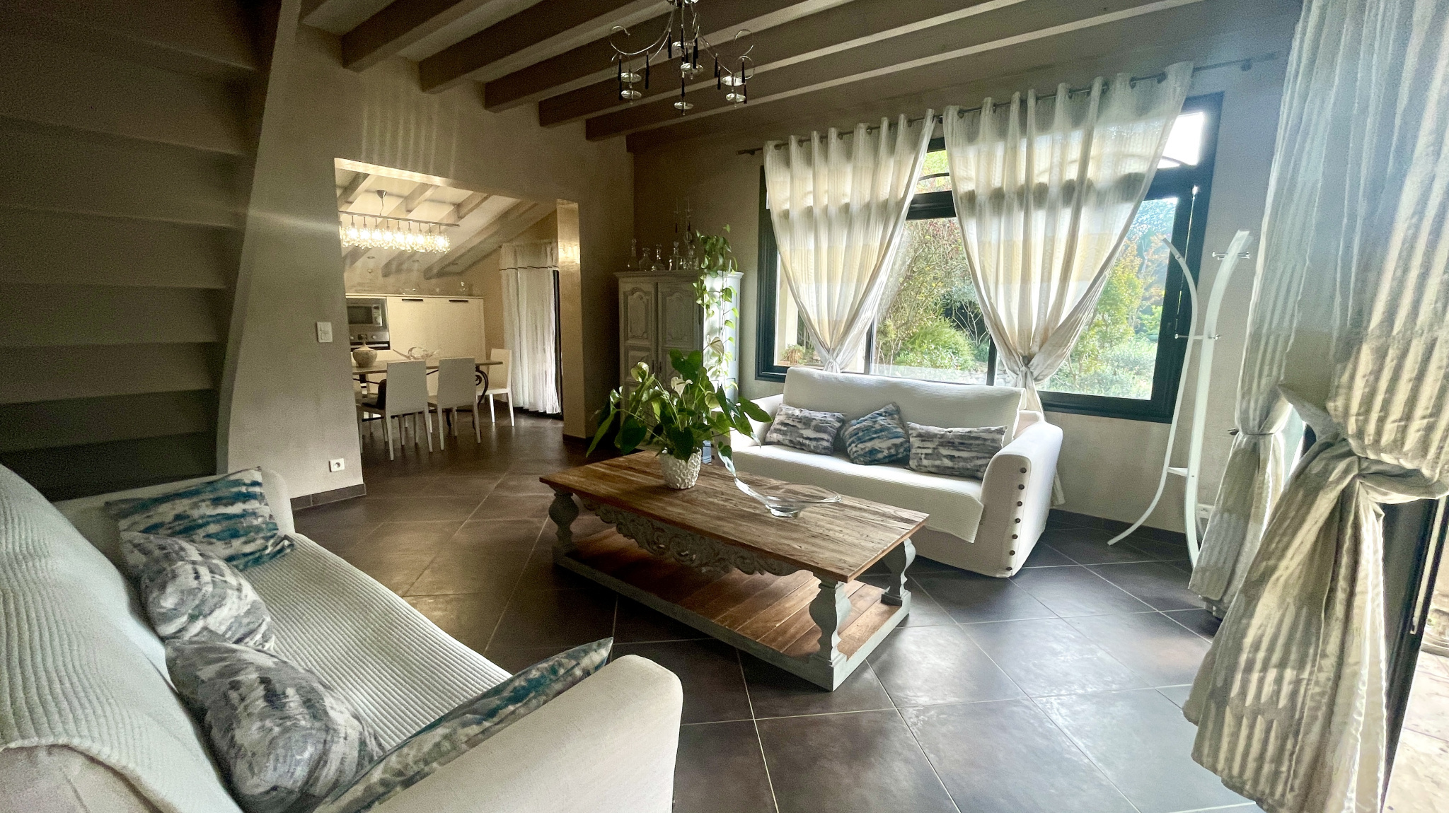 A LOUER - Dans le jolie village de Tresques, proche de Bagnols-sur-ceze, des site de Marcoule et Tricastin, à 35' d' Avignon et Nîmes. Magnifique maison T3/4 de 80 m2, entièrement meublée, au calme, dans une propriété privée. Au rez-de chaussée, on découvre un salon lumineux, une cuisine/salle-à-manger entièrement équipée, une salle d'eau avec WC, à l'étage on dispose de 2 grandes chambres communicantes ( 2 lits doubles, 1 lit simple) . A l'exterieur on dispose de 2 belles terrasses privatives, dont une couverte avec barbecue, et d'un accès au jardin luxuriant. Place de parking privatif et sécurisé. Chauffage au sol par chaleur douce au rez de chaussée et climatisations réversibles à l'étage dans les chambres. Idéal pour couple ou personne seule en transition, ou pour mission professionnelle. Bail meublé de 8 mois maximum. (Bail mobilité jusqu'à fin mai 2026) . Loyer 1075€/mois, charges comprises (provisions Eau Edf OM - internet). Honoraires TTC à la charge du locataire : 880 € TTC pour le bail et l'état des lieux d'entrée et de sortie.DPE:C- GES:C. Estimation des coûts annuels d'energie entre 890 €et 1290 € . Pour plus d’informations ou pour planifier une visite, contactez Sylvie ALGARRA 07 45 20 29 15. Les informations sur les risques auxquels ce bien est exposé sont disponibles sur le site Géorisques : www.georisques.gouv.fr