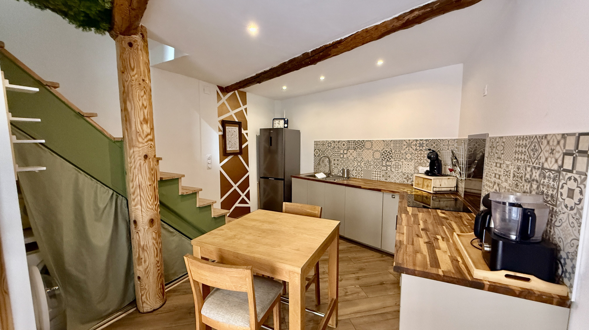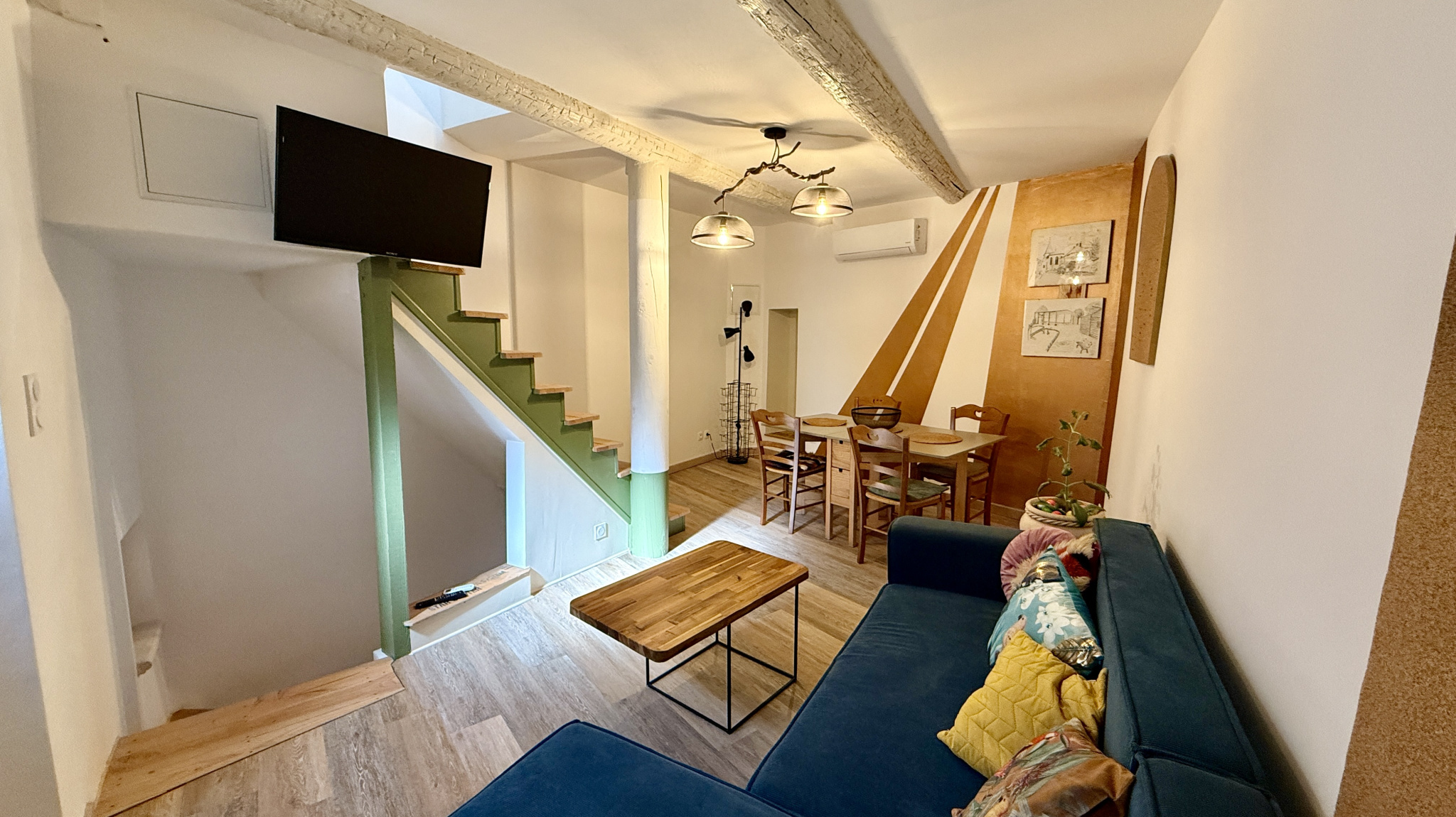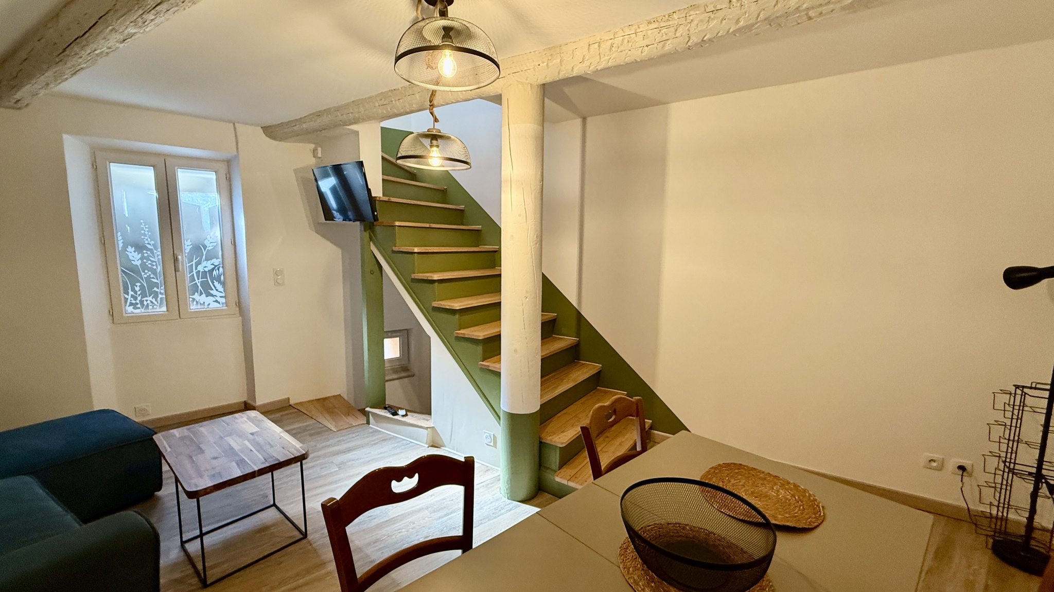 À louer Maison de ville meublée Carpentras rue Lallemand À Carpentras, près d’Avignon, charmante maison de ville meublée de 52 m2 habitables sans exterieur, entièrement climatisée et aménagée sur trois niveaux. Elle comprend un salon, une cuisine équipée, une chambre et une salle d’eau. Idéal pour une personne seule ou un couple recherchant un logement prêt à vivre.