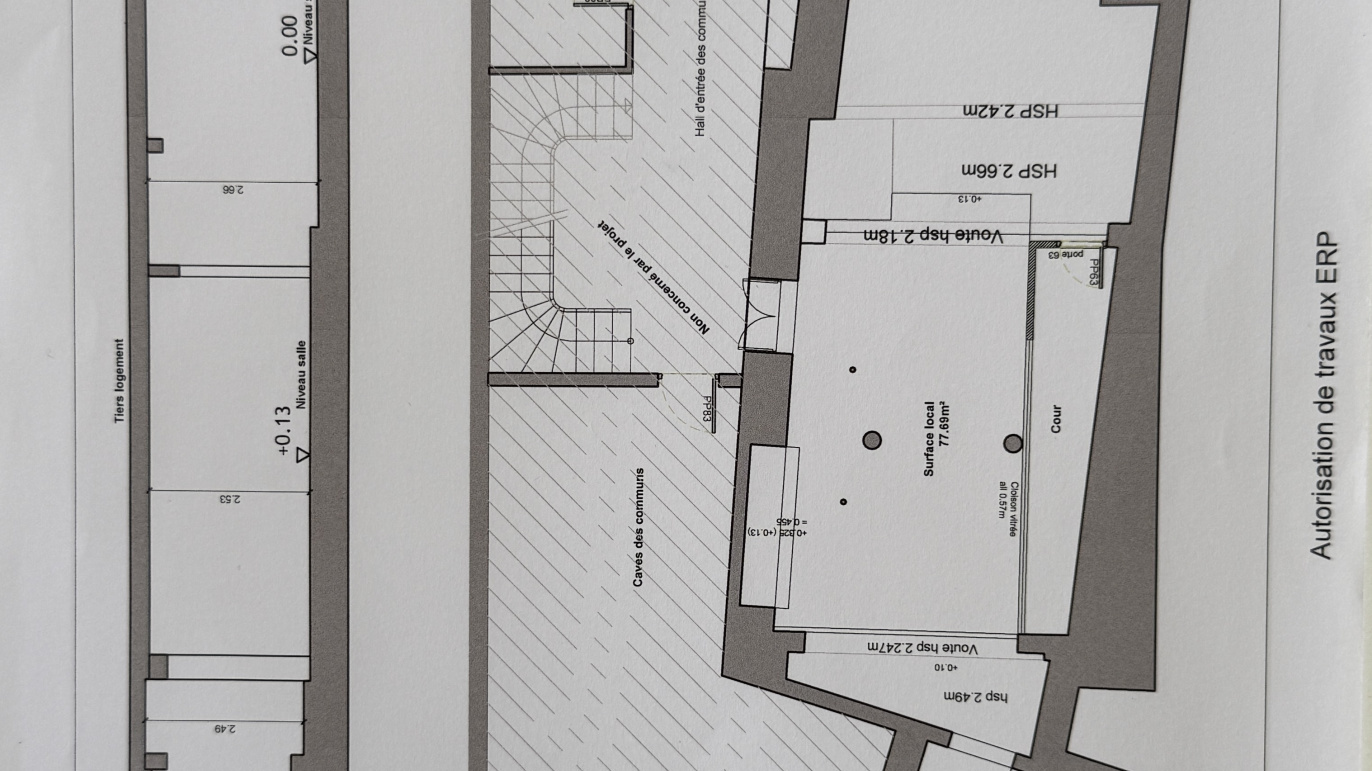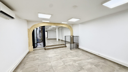 Situé en rez-de-chaussée d’un immeuble ancien, il se compose d’un espace principal lumineux, d’une grande cave voûtée exploitable en stockage ou archivage, d’un espace sanitaire, d’une kitchenette, ainsi que d’un petit espace extérieur privatif.